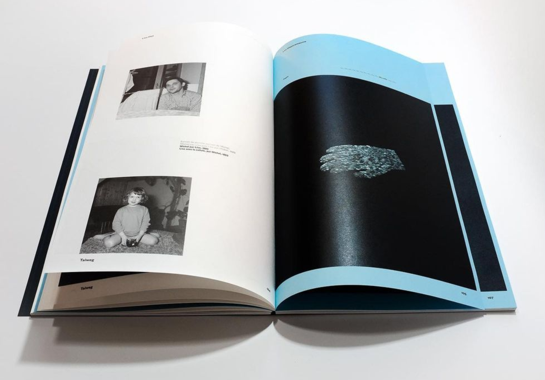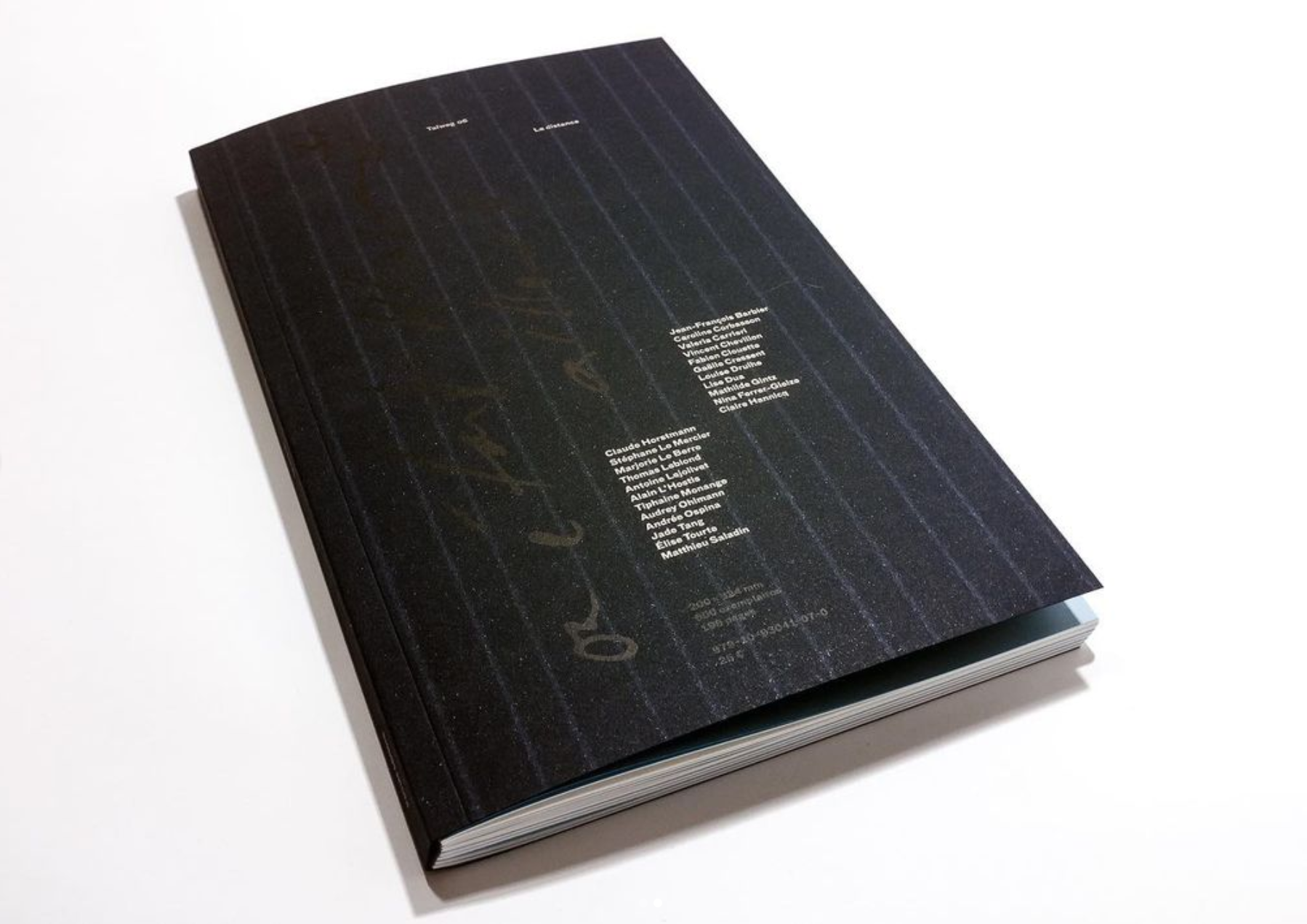 Talweg 6 emprunte ses dimensions aux normes américaines des courriers administratifs, et notamment au format dit « foolscap ». Cette allusion au courrier vise à placer l’objet éditorial dans le champ de la lettre, écriture de la distance par excellence. La reliure contribue à renforcer ce sentiment, évoquant le bloc de correspondance. Talweg 06 fait entrer en conversation l’ensemble des propositions par un système graphique fonctionnant par échos et renvois, rendant concrète l’appréhension de la notion de distance par le lecteur.